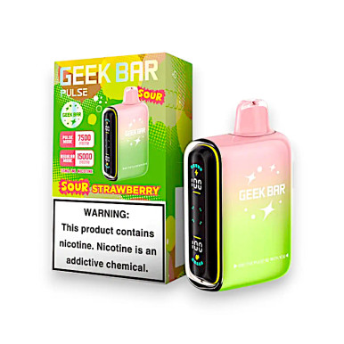 Indulge in sweet and tangy strawberry flavor with a sour kick in every puff. Featuring 16ml e-liquid, 50mg nicotine, up to 7500 or 15000 puffs, a rechargeable 650mAh battery, and a full LED display, it delivers bold taste and long-lasting performance.